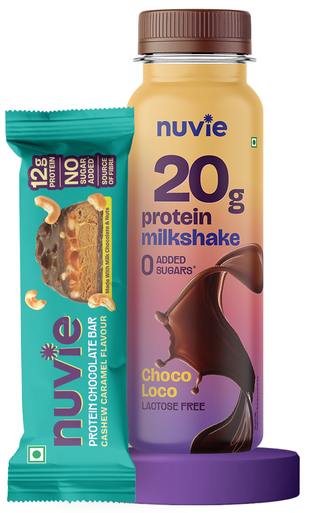 Combo 2 : 20gm Chocolate Protein Shake + 12gm Cashew Caramel Protein Bar